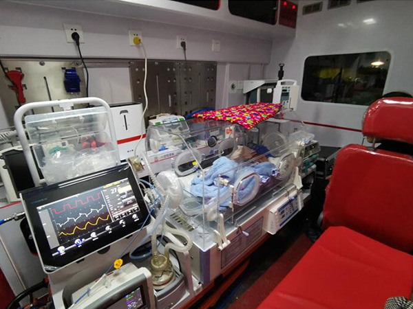 医疗设备齐全:全自动呼吸机、心电监护仪、微量泵新生儿暖箱、吸痰器、氧气急救药箱等.路上有保障,行程更安全!